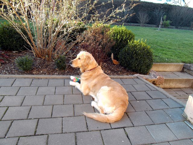 Mira beim Sonnenbaden 2013 kurz vor dem Wurftag